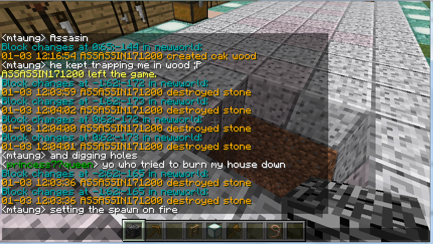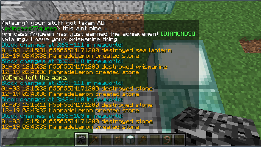 Logblock proof, sea lanterns and placed stone griefed - ultima84