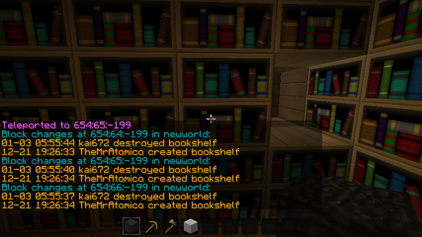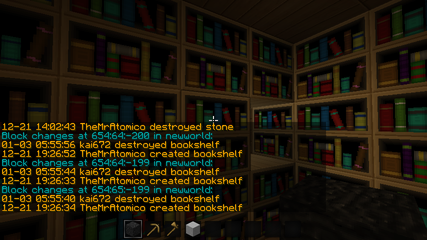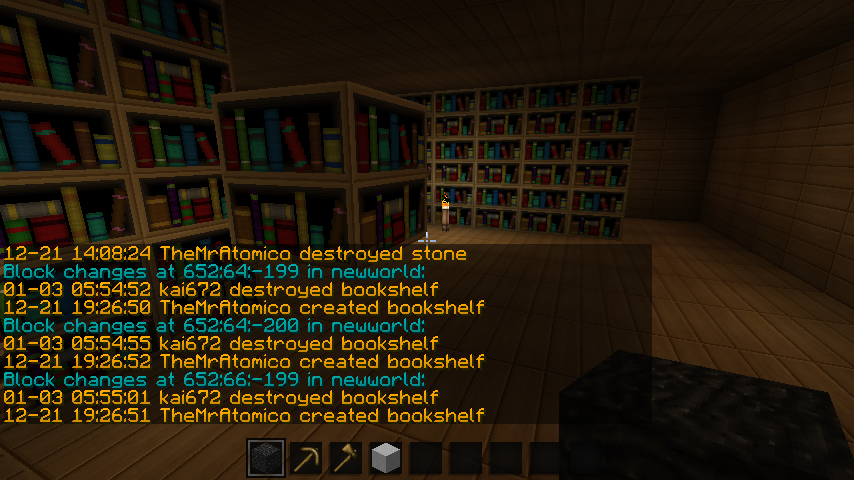 Logblock proof, bookshelves griefed - ultima84