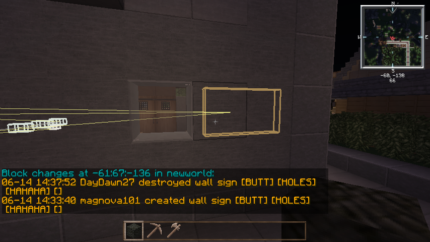 Logblock proof, offensive sign placed on another players build - ultima84