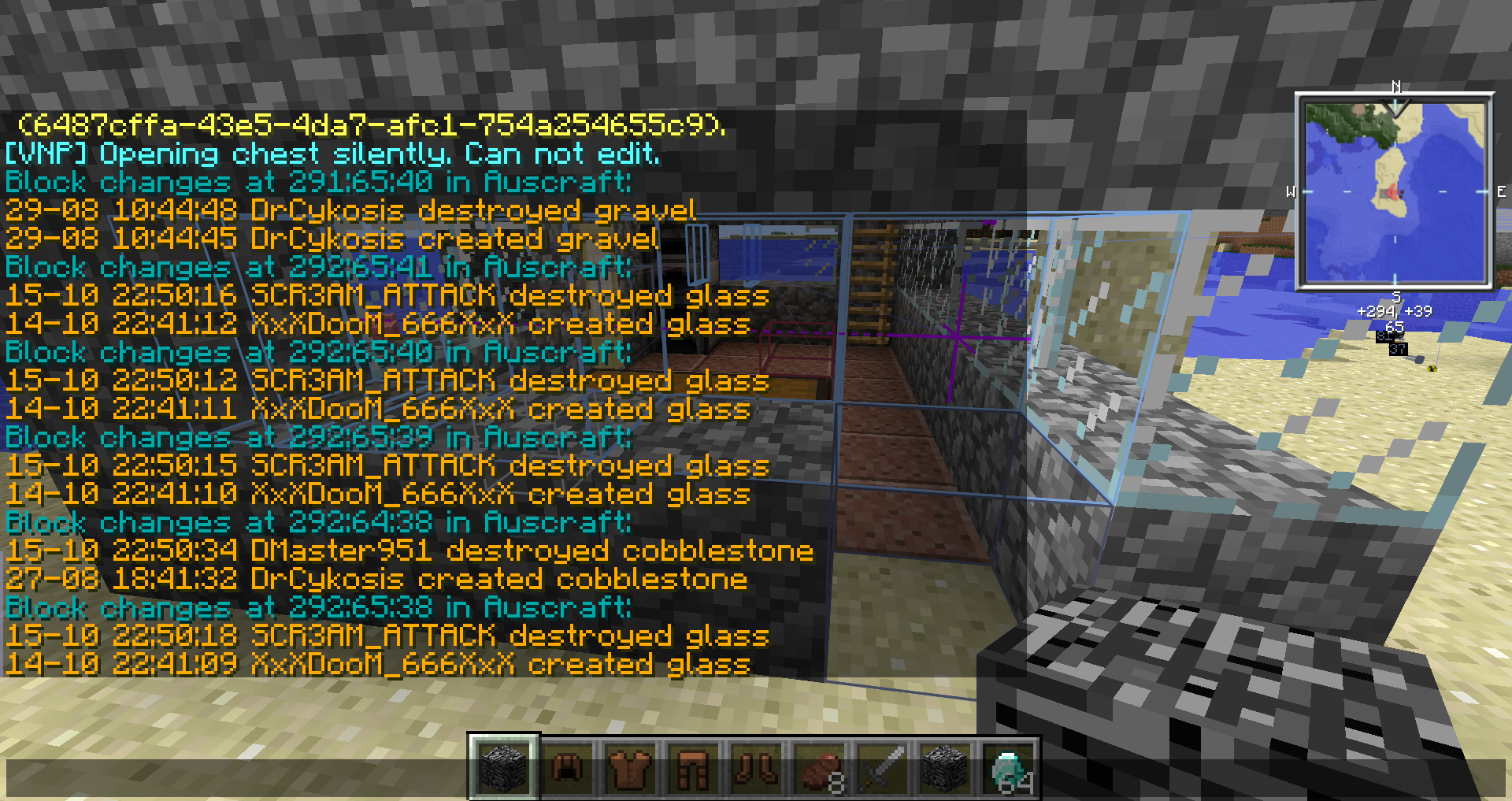 Logblock proof, glass and cobblestone griefed - ultima84