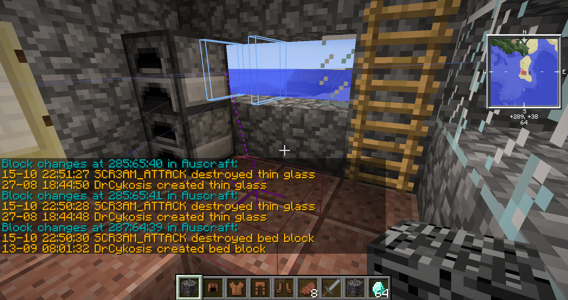 Logblock proof, glass and bed griefed - ultima84